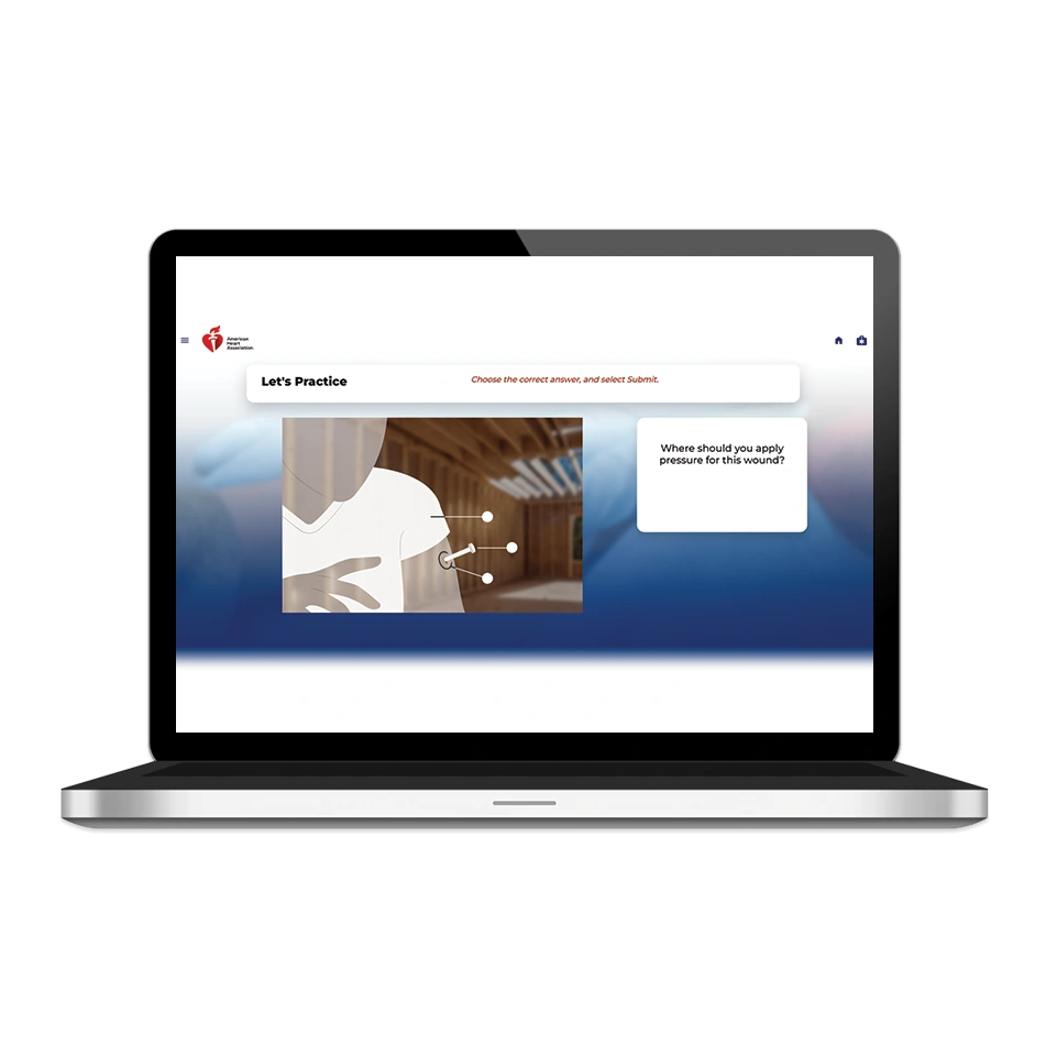 Heartsaver First Aid Online is the required online course for the American Heart Association blended learning training.